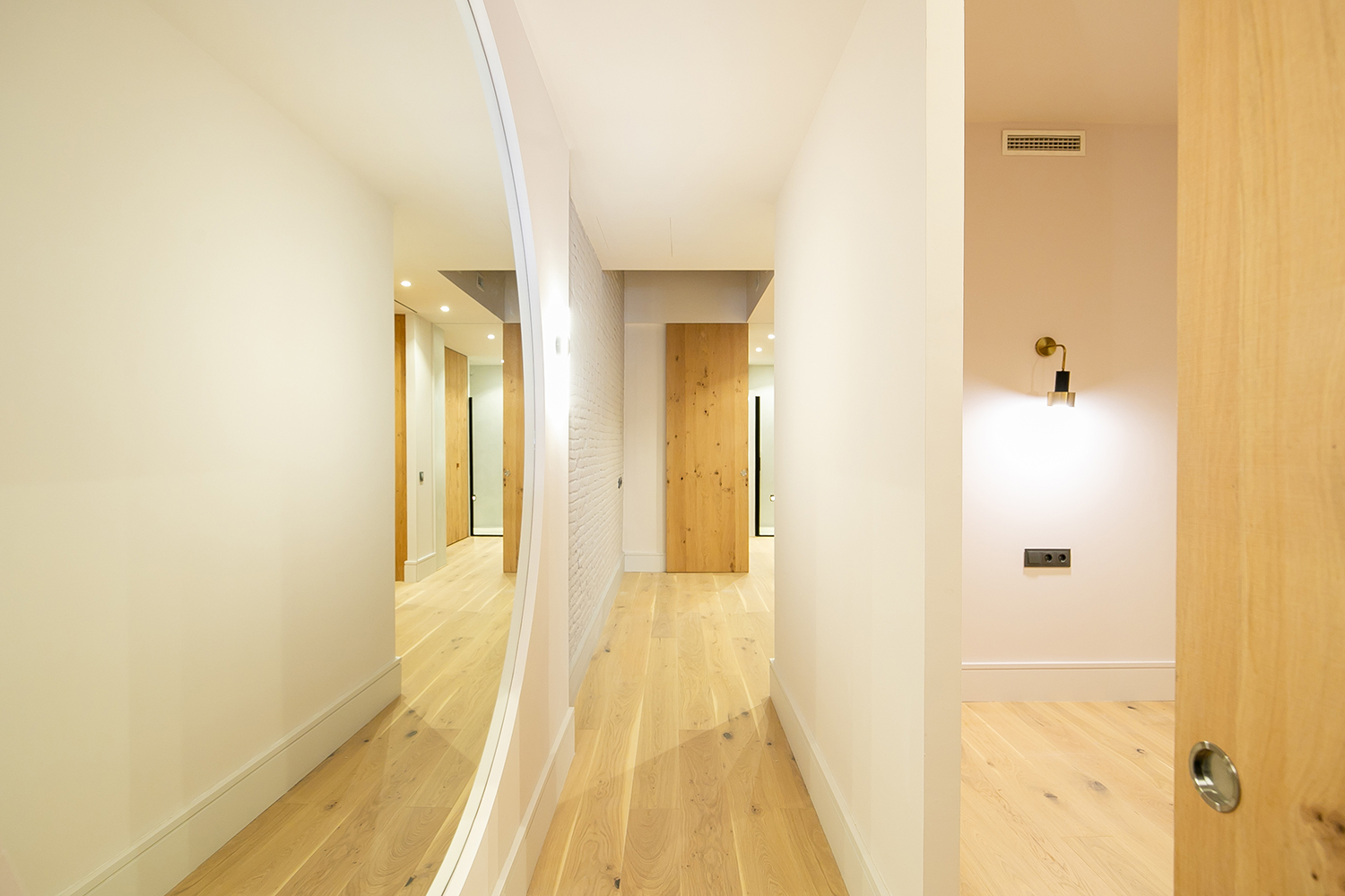 Las viviendas se destacan por una distribución cuiadosamente planificada, diseñada para optimizar el espacio y la luz natural. La elección de materiales de alta calidad y tonos cálidos contribuye a crear un ambiente acogedor y funcional. Al ingresar, un corredor que actúa de recibidor y separador con el resto de las estancias. En el salón, cuenta con dos amplios ventanales que permiten la entrada de luz natural desde la calle Enrique Granados. Las dos habitaciones están conectadas por una pequeña área de trabajo y también por un discreto patio interno que añade frescura y color a los espacios. Ambos baños son completos, garantizando comodidad y funcionalidad.