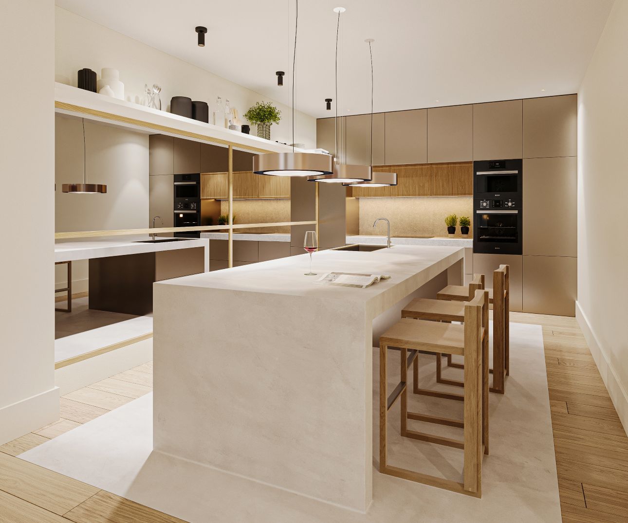 La zona de descanso ofrece auténticos refugios de calma: Una suite, amplio y sereno y un segundo dormitorio, perfecto como habitación o despacho.