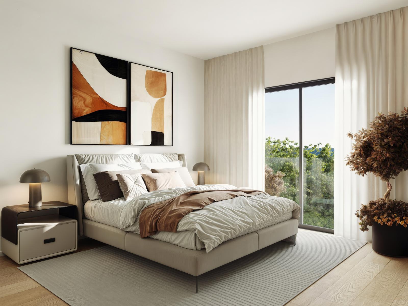 Las zonas de estar y dormitorios priorizan la amplitud y la luminosidad, con ventanales que permiten una conexión fluida con el exterior y una atmósfera serena en cada estancia.